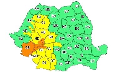Administrația Națională de Meteorologie a extins codul galben de vreme severă.