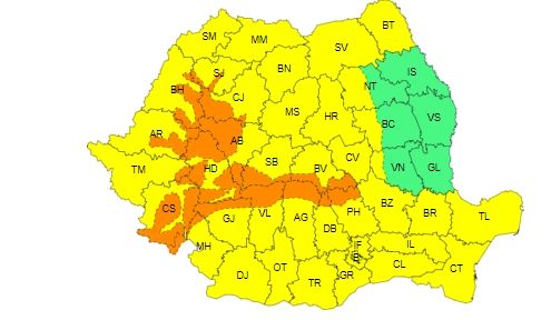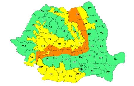 Prima avertizare este cea de Cod Galben de intensificări ale vântului în cea mai mare parte a țării, viscol și ninsori moderate cantitativ la munte, ninsori viscolite în Maramureș și Transilvania