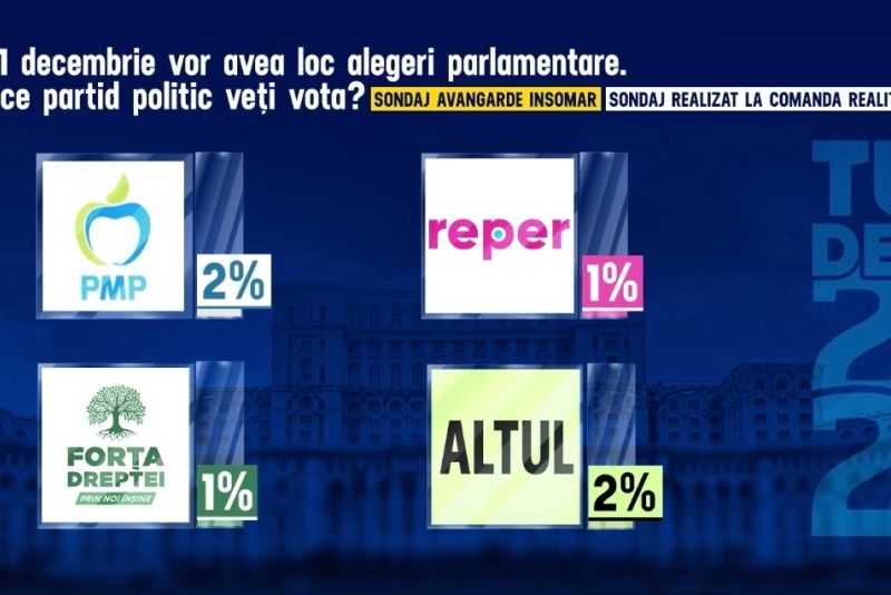 În ceea ce privește intențiile de vot la alegerile parlamentare din 1 decembrie, datele aceluiași sondaj Avangarde INSOMAR arată că românii ar vota astfel: